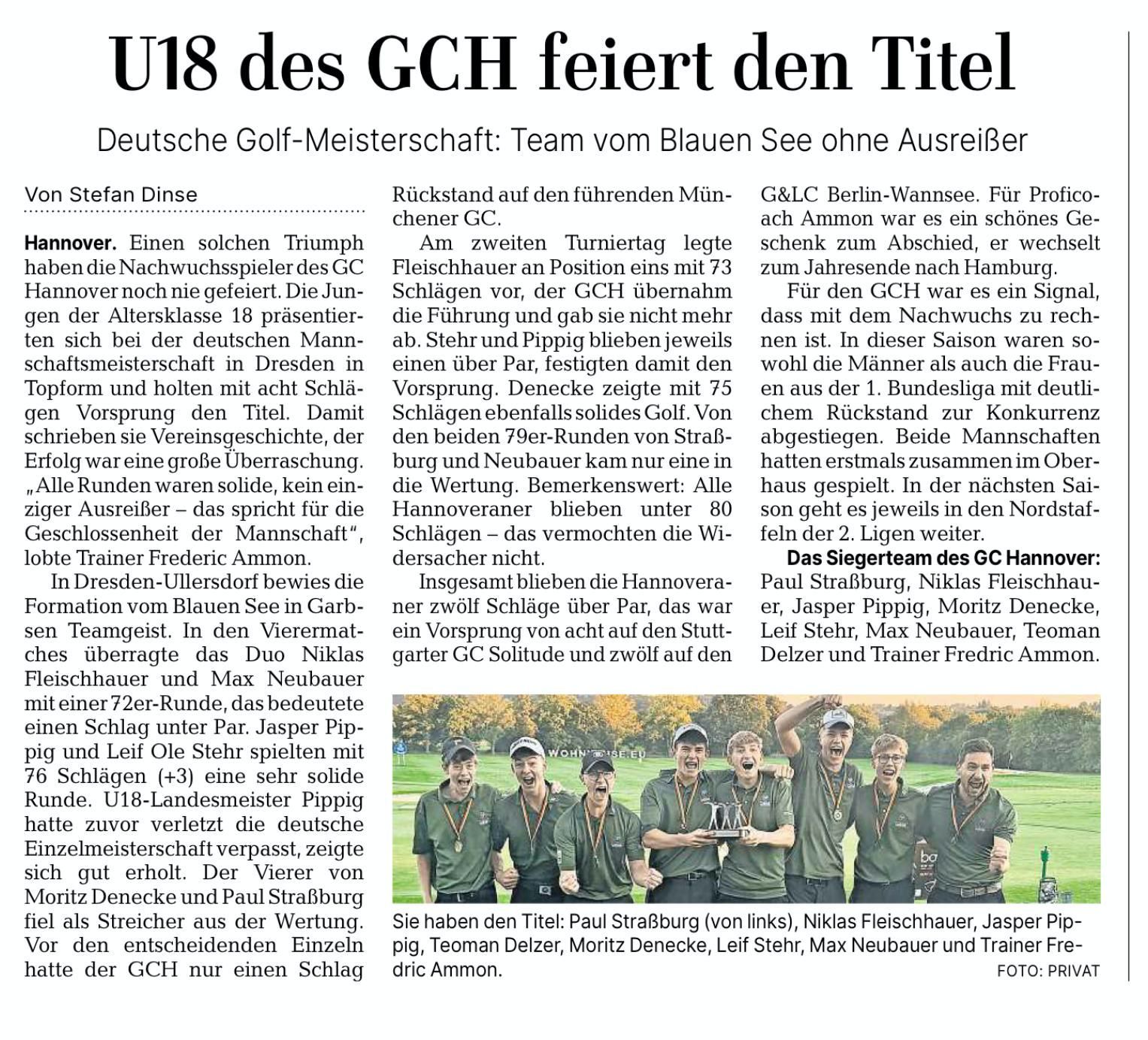 Golf: Deutsche Meisterschaften der Altersklassen 18 und 14 - GC Hannover auf Rang fünf27. September 2014 - Leinezeitung | Hier sind wir zu Hause